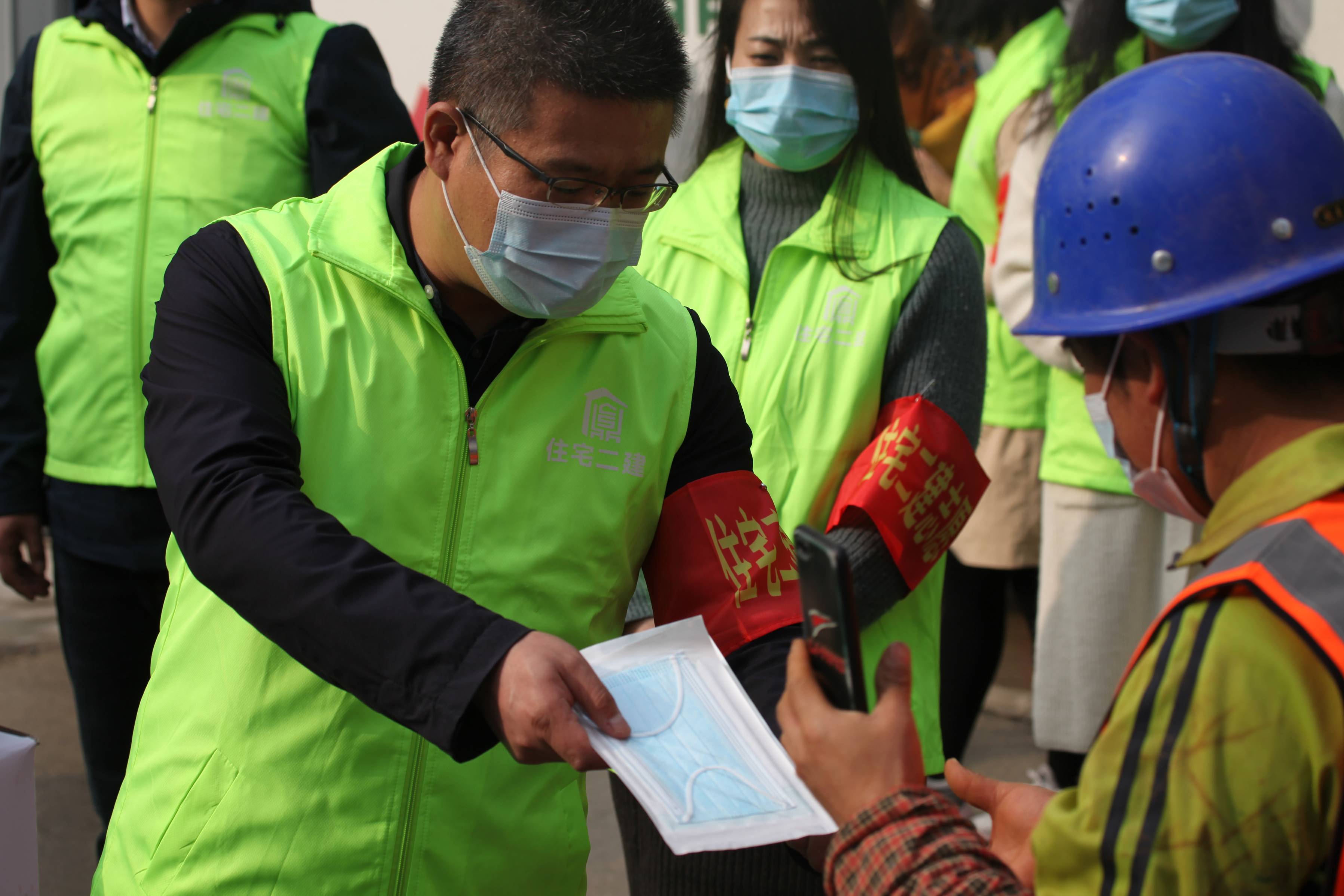 本次活動由公司副經(jīng)理杜軍同志和紀委書記尚進同志帶隊,志愿者一行16人,首先來到米家崖保障房項目工地,向項目工人宣傳了在當前西安嚴峻的疫情防控形勢下,做好常態(tài)化疫情防控的重要意義,并組織工人學習各項防疫知識,例如:如何正確佩戴口罩以及七步洗手法等各項科學防控保護措施,倡導大家提升疫情防護的警惕性,切實做好個人日常防護,防止疫情傳播蔓延。同時,志愿者還為工人們送上口罩、酒精、消毒液等防疫物資,叮囑大家做好自身防疫保護。