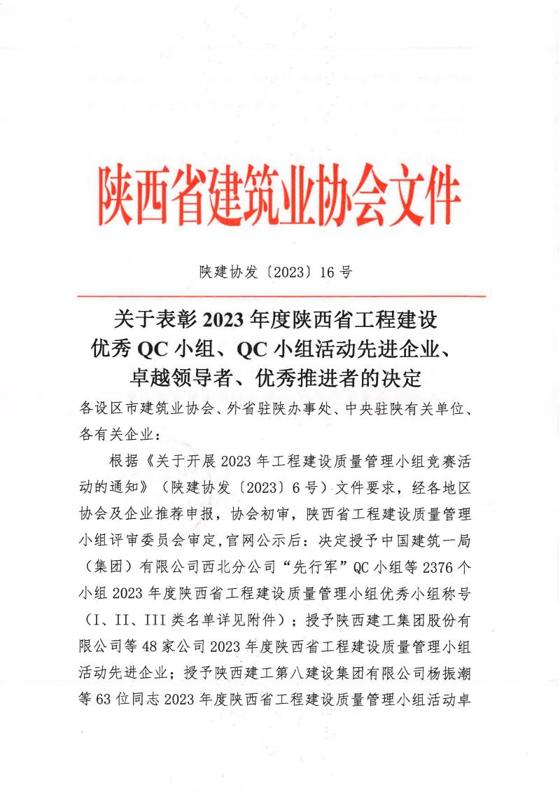 近期,在陜西省建筑業(yè)協(xié)會2023年QC成果評審中,港務中路項目QC小組《切割機擋火、降塵、水過濾系統(tǒng)的研制與應用》榮獲二類成果獎。今后我們將繼續(xù)努力,再接再厲,爭取拿到更多成果獎項,為提升工程質量貢獻一份住總力量。