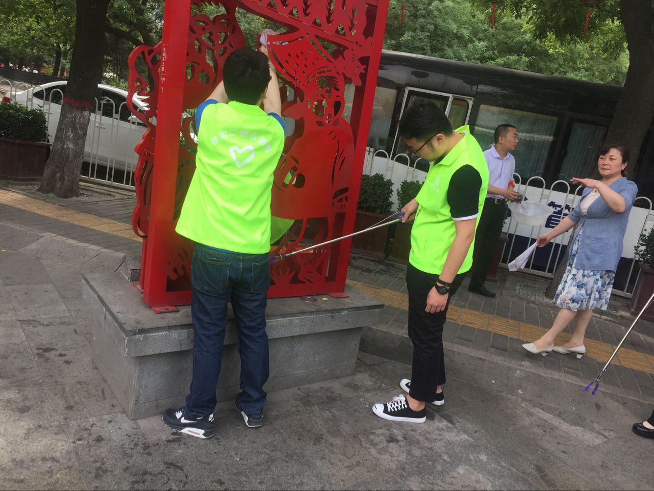 志愿者合理分工,積極配合在指定區(qū)域--永興坊周?chē)鍜呗访胬瑩焓盁燁^雜物,擦洗人行道護(hù)欄,清理衛(wèi)生死角。用實(shí)際行動(dòng)倡導(dǎo)文明新風(fēng)、塑造城市形象,為打造美麗新城貢獻(xiàn)力量,同時(shí)也展示了文明單位的良好風(fēng)貌。